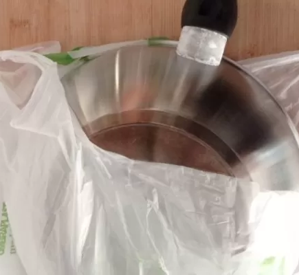 Il fondo della padella è bruciato? Risolvi il problema con un sacchetto di plastica